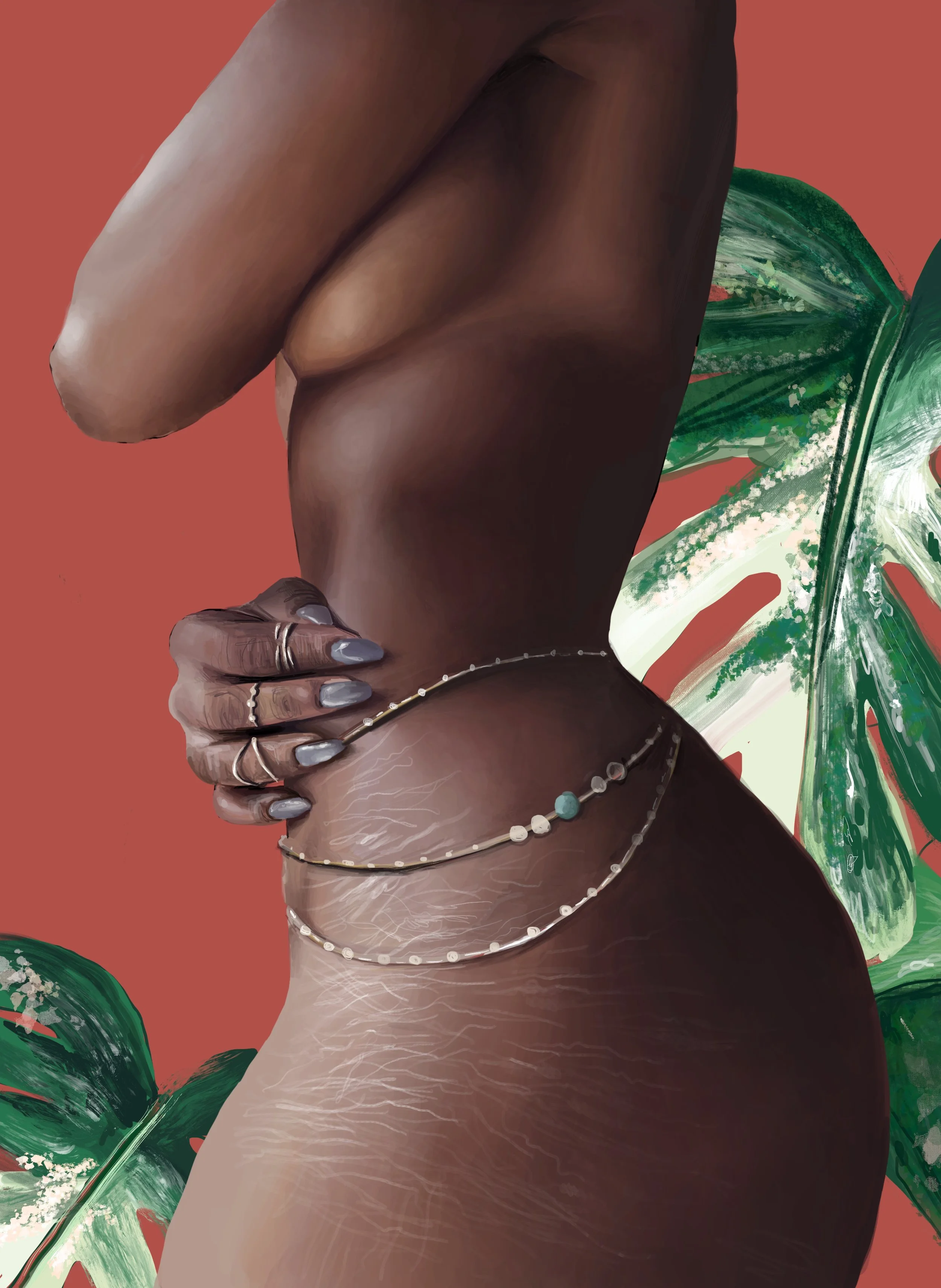 Curves, stretchmarks, muscle, freckles, shadow, softness…